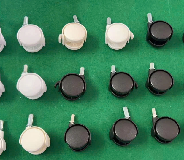 Bánh xe ghế làm từ nhựa đủ độ chắc chắn và dẻo dai, chịu được tải trọng khoảng 13kg/bánh, di chuyển nhẹ nhàng bảo vệ sàn nhà khỏi bị trầy xước. Ngoài ra bánh xe còn được trang bị chốt giữ giúp giữ cố định, cân bằng lúc cần thiết